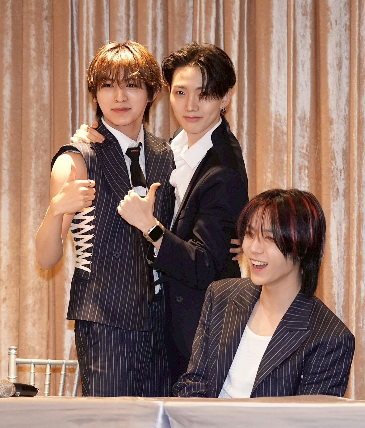 至於知不知道台南市長黃偉哲有出小卡,成員們笑說不知道有小卡,感謝台南市長黃偉哲私下熱情,「市長還送了周邊貼紙跟橡皮擦給我們。」讓他們印象深刻。成員們則分享從練習生就猛練自拍,「大家都練習很久,燈光和角度真的很重要。」成員們也向台灣粉絲喊話:「在台南見到大家真的很開心,今年還會有很多機會再來台灣,也希望在韓國、各地演唱會都能和粉絲見面。」