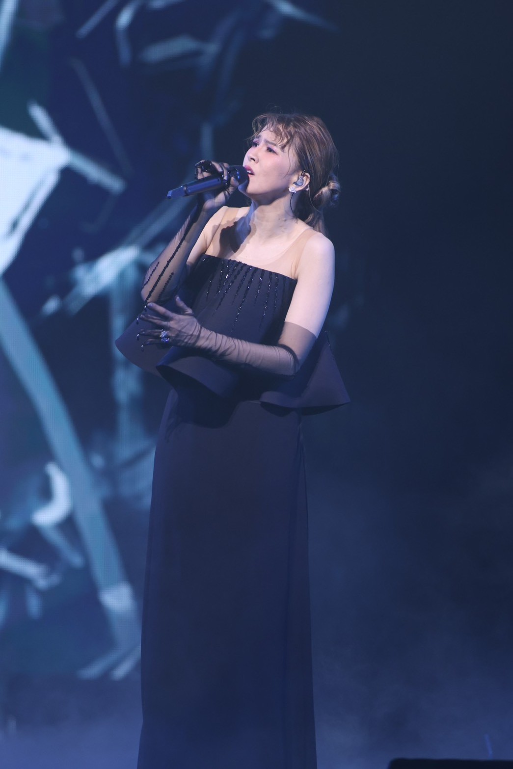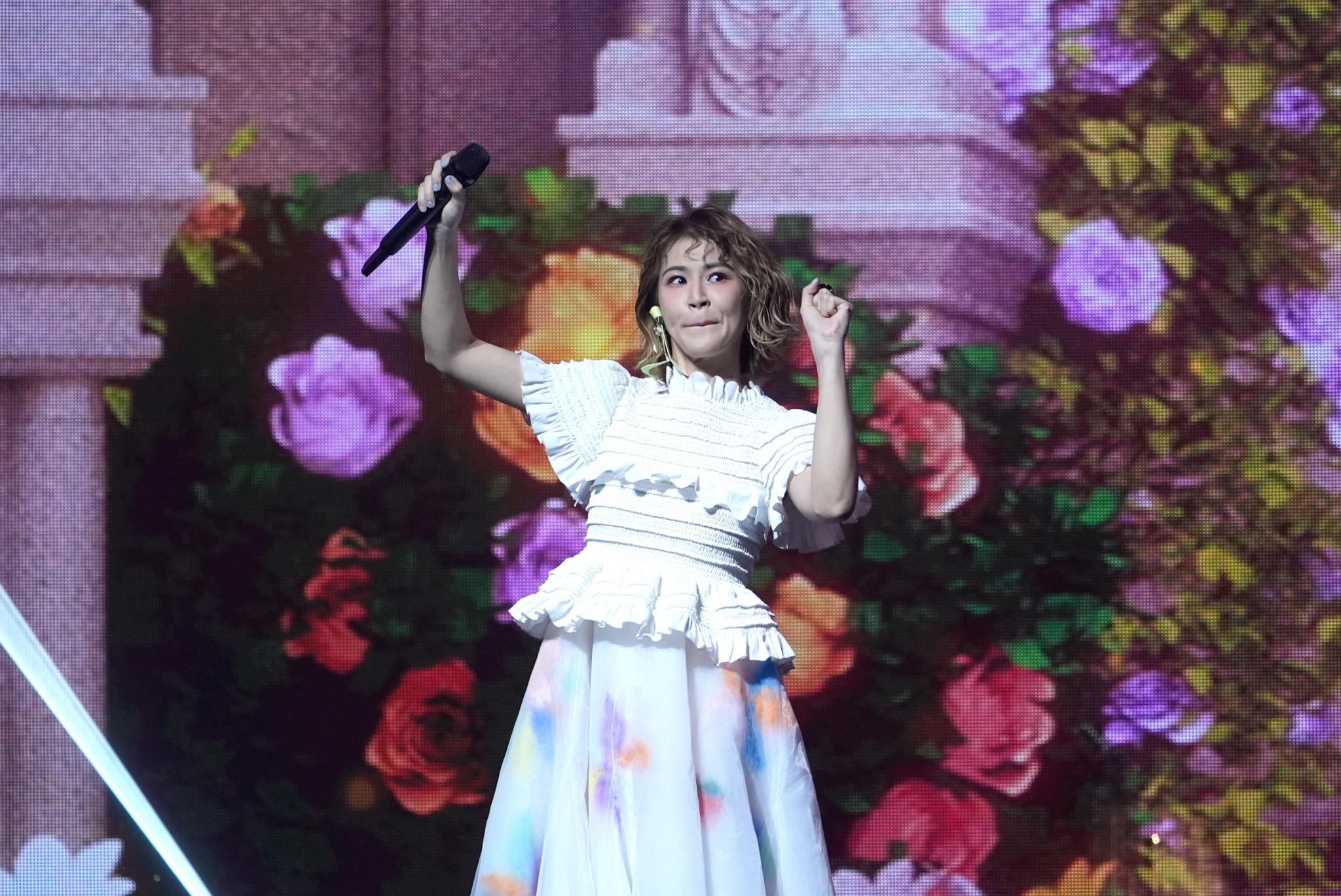 【緯來新聞網】曾沛慈出道18年,今(8日)首次站上北流舞台開唱,舉辦《關於愛這件事》巡迴演唱會台北站,吸引超過四千名歌迷擠爆現場,音樂人老公Peter也到場力挺。演唱會一開場曾沛慈身穿白色禮服坐在佈滿花朵的鞦韆上,宛如仙女從天而降,以〈搶先看〉華麗登場。之後換裝則戴上要價450萬元的伯爵珠寶小露香肩;與男舞者之間有親密互動時,曾沛慈也急忙對台下喊:「老公不要看!」逗笑眾人。