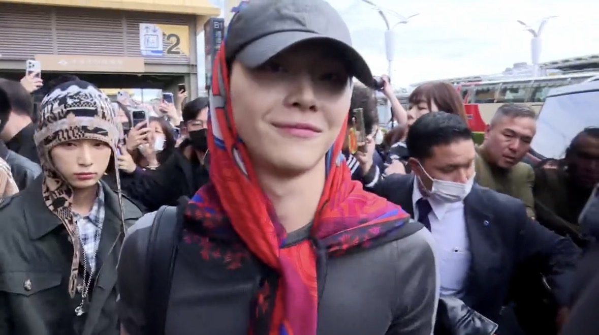 &TEAM這次為《紅白》訪台,31日出席記者會,晚上則是到小巨蛋參加《紅白》錄影。這次僅有7位成員來台,K、EJ因行程關係並未出席,班機也未對外公開,但依舊吸引大批粉絲到場支持。台灣成員王奕翔今戴著灰色帽子搭配紅色頭巾現身,以一身「GD風格」現身,緊身短袖看得出好身材。聽到現場粉絲熱情大喊「王奕翔歡迎回家」,他也點頭微笑、微手跟粉絲打招呼。有趣的是,他也是成員內唯一一位聽懂中文的成員,聽到現場攝影直接用中文要求「奕翔看這邊」、「比愛心」,他也忍不住笑出來,場面逗趣。