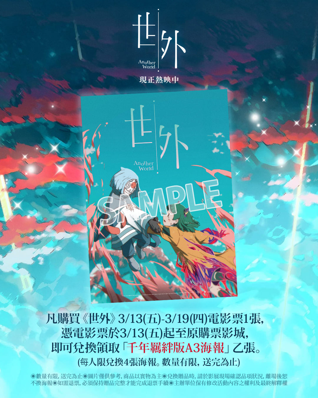 此外,凡購買首週(3/13-3/19)電影票一張,即可兌換全台首創技術的首週特典「千年羈絆版」海報,海報右上角採用隱藏墨水印製,觀眾只要曬到足夠陽光或使用紫外光照射,就能看到「小鬼」留下的神祕訊息,數量有限送完為止。