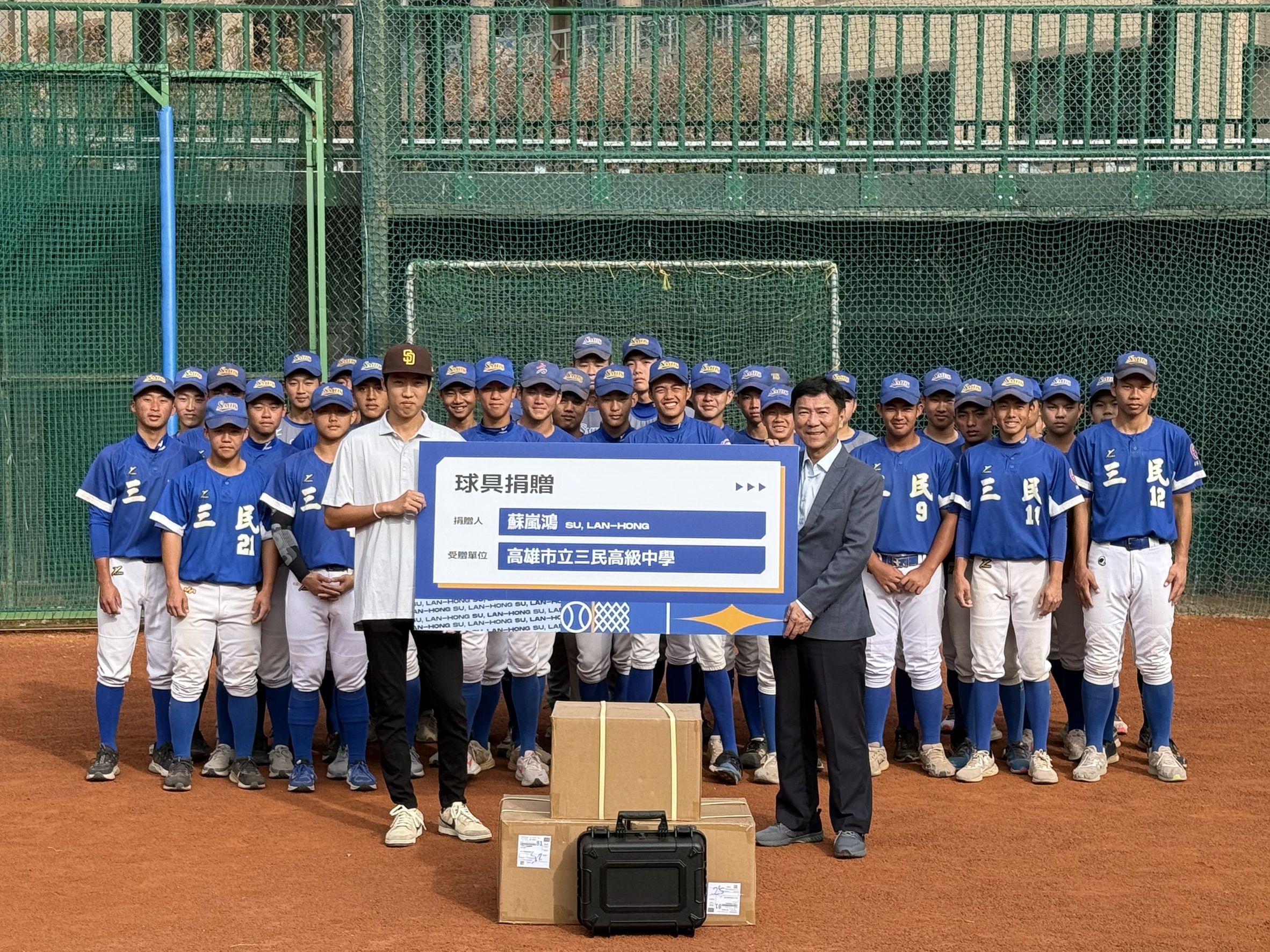 2025年U-18世界盃棒球錦標賽中華隊王牌投手、現加入美國職棒聖地牙哥教士隊體系的旅美小將蘇嵐鴻,今天(17日)回到栽培他的母校高雄市立三民高級中學,捐贈多套...