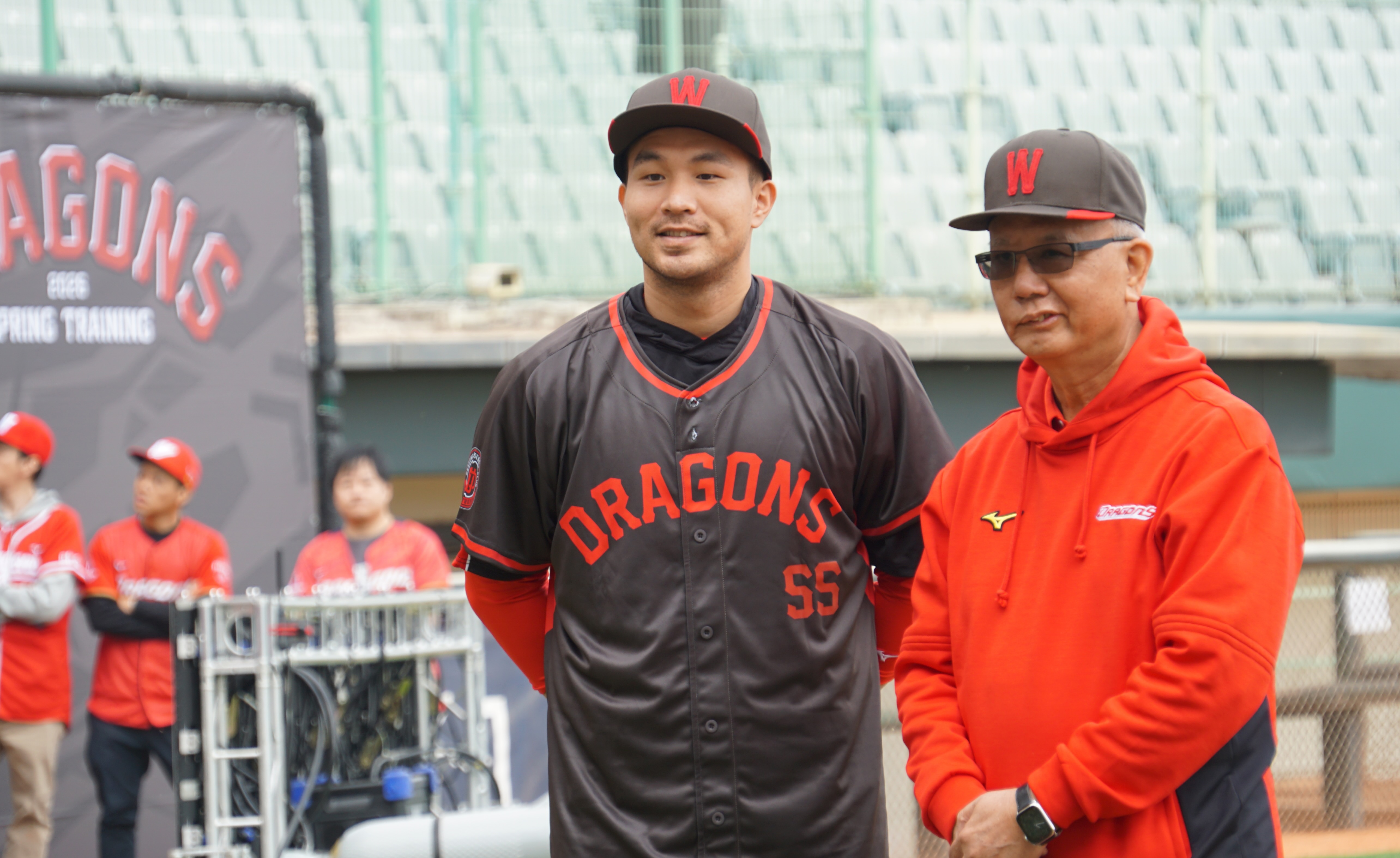 味全龍今天(18日)在斗六棒球場舉行開訓儀式,入選2026年世界棒球經典賽中華隊43人集訓名單的選手—吉力吉撈・鞏冠、張政禹、蔣少宏也都暫時北上回到母隊共襄盛舉...