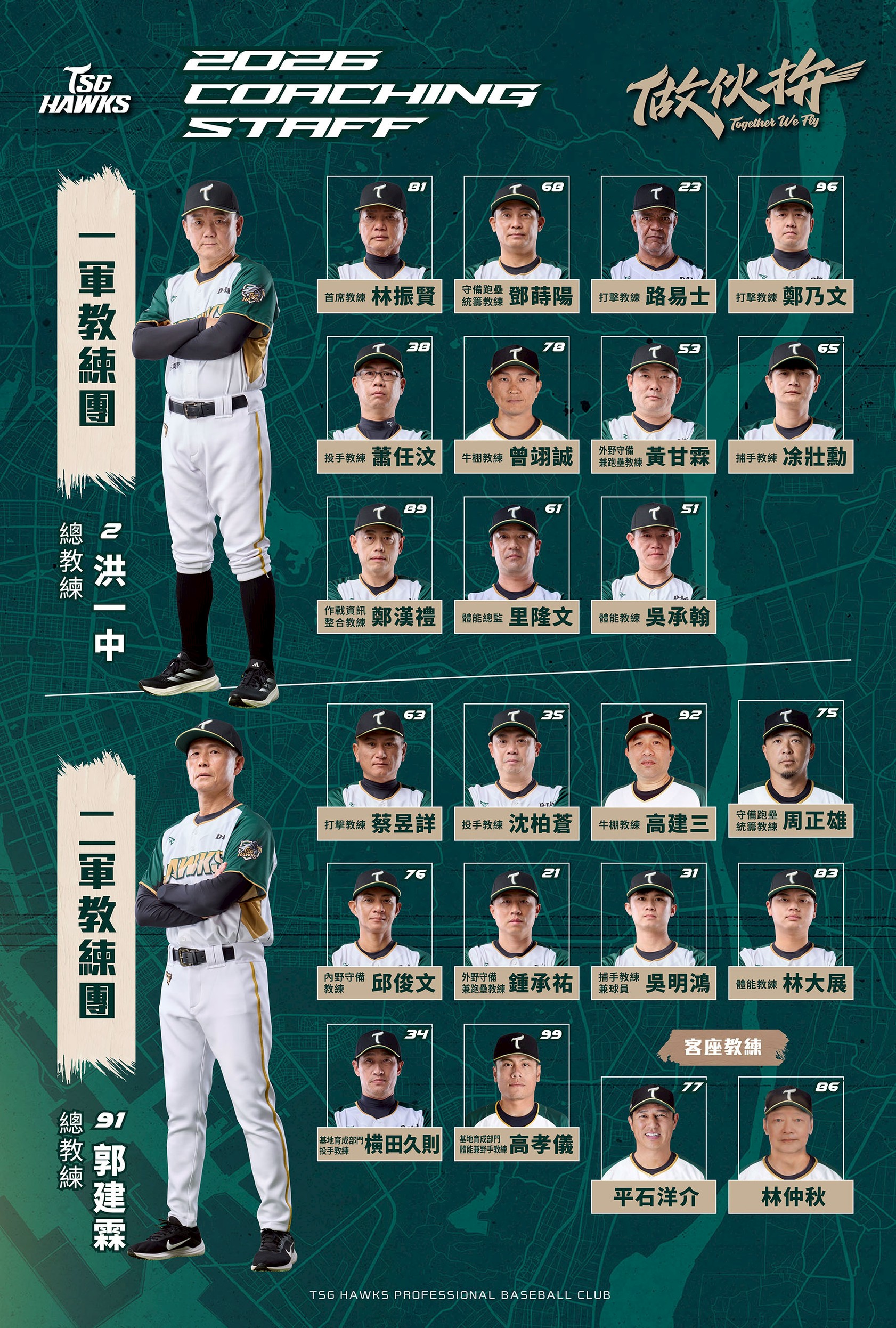 台鋼雄鷹隊史第3年一軍賽季,持續由洪一中總教練領軍,教練團則有異動。原二軍總教練林振賢轉任一軍首席教練,郭建霖接任二軍總教練。在春訓期間,另邀請東北樂天金鷲前一...