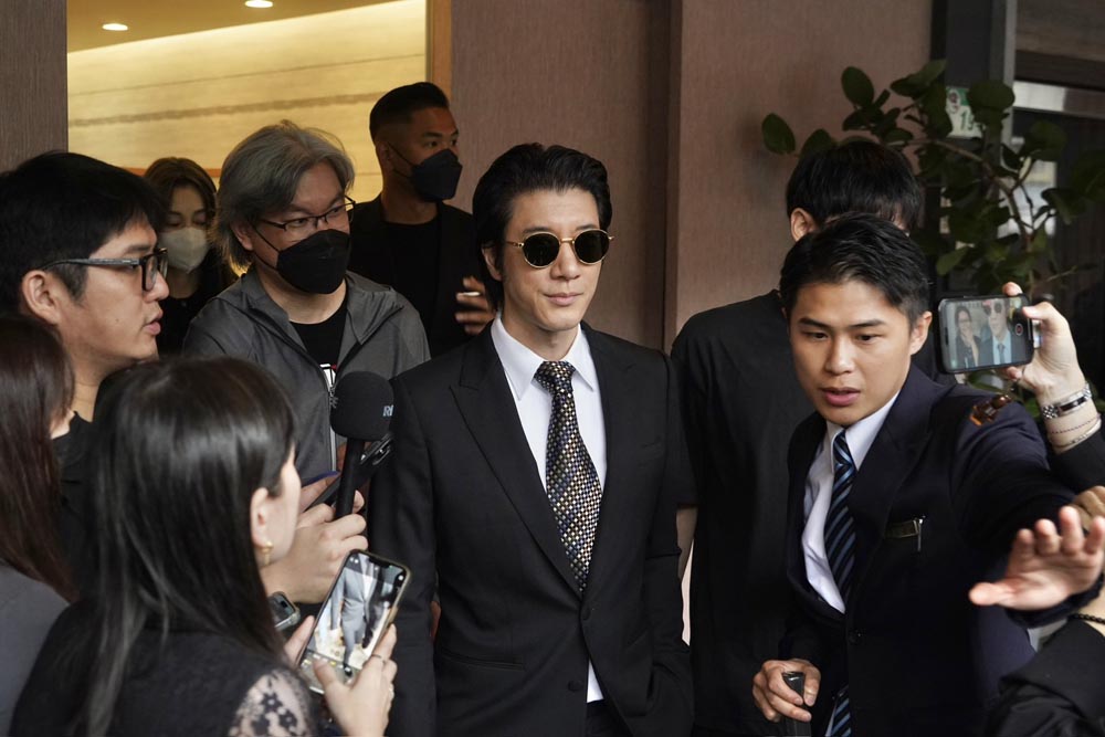 陳建州帶著老婆出席追思會,范瑋琪揮手致意。(圖/記者許方正攝影)