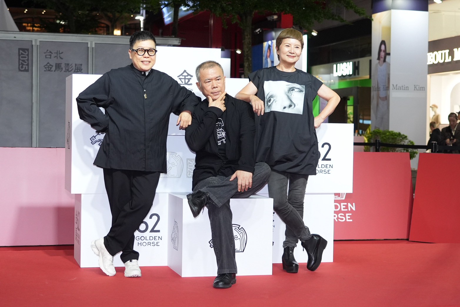 《大濛》金馬記者會,曾敬驊(左起)、方郁婷、9m88、柯煒林。(圖/許方正攝)